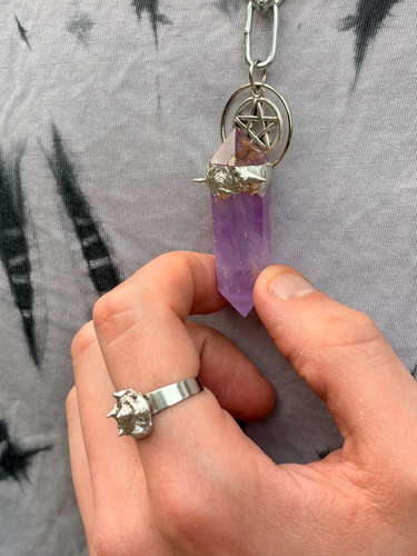 Spiked amethyst DT pentagram pendant with stainless steel chunky chain