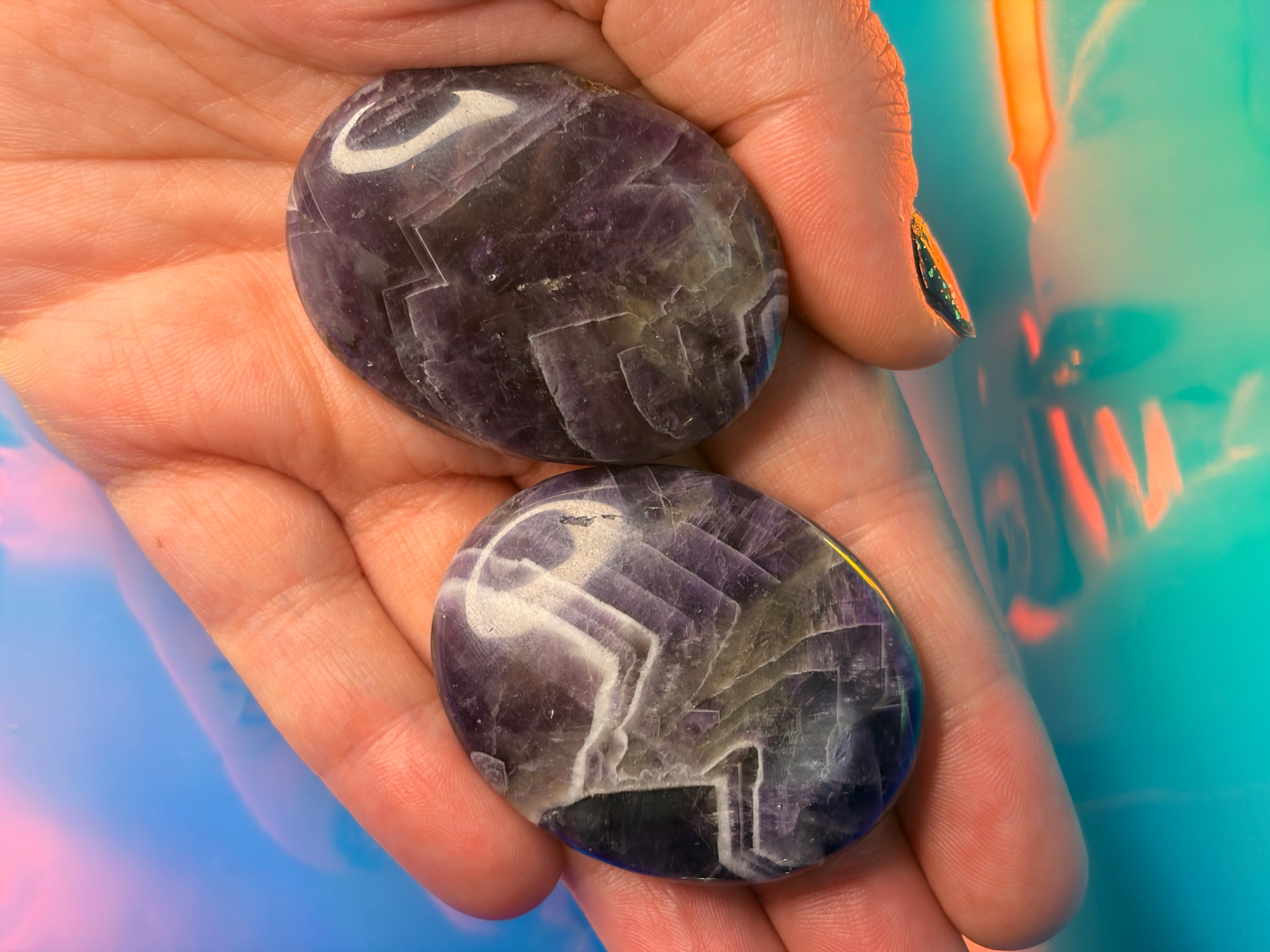 Chevron amethyst palmstone 5cm