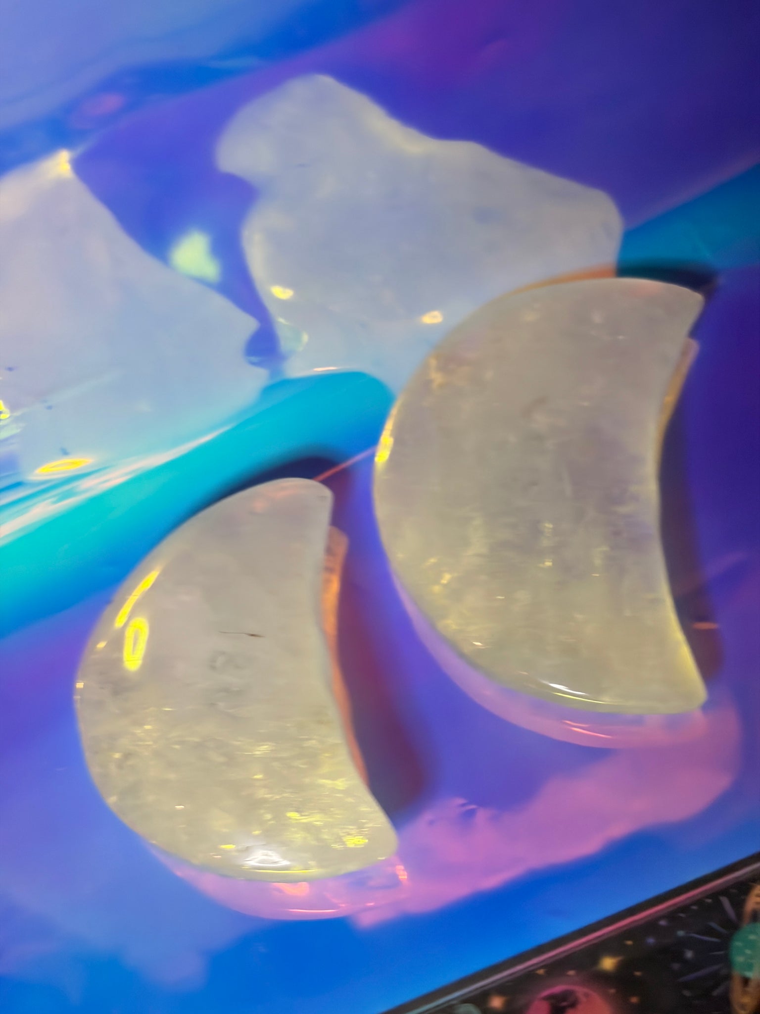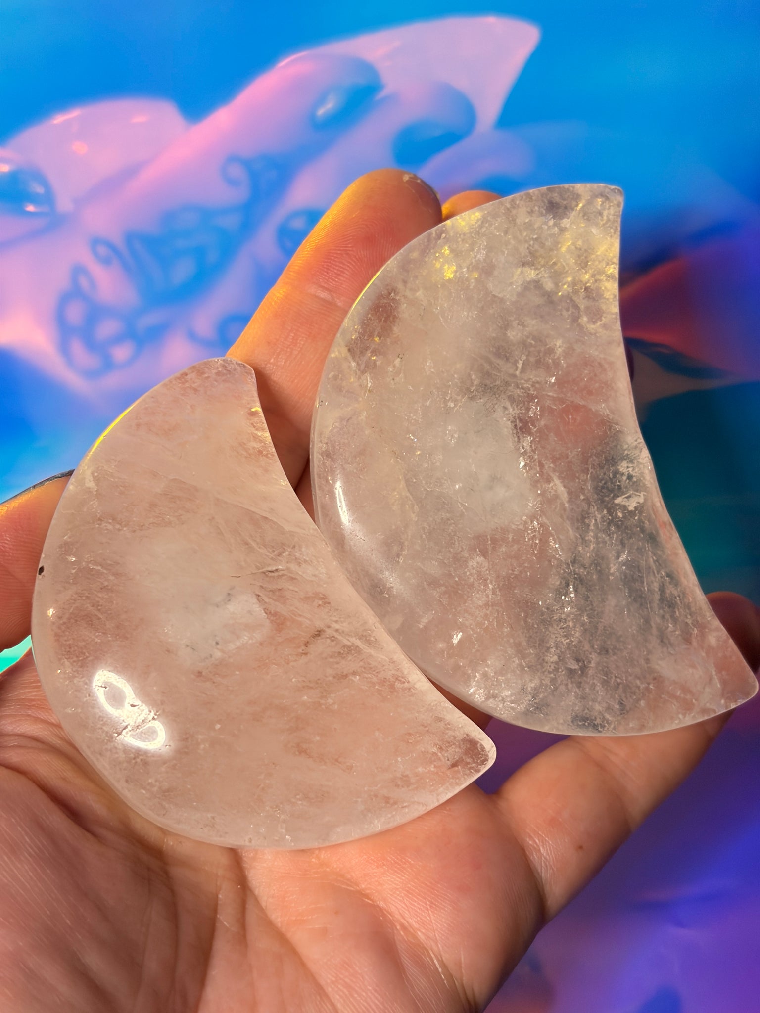 Clear quartz moon A) 7cm 95g B) 8cm 110g
