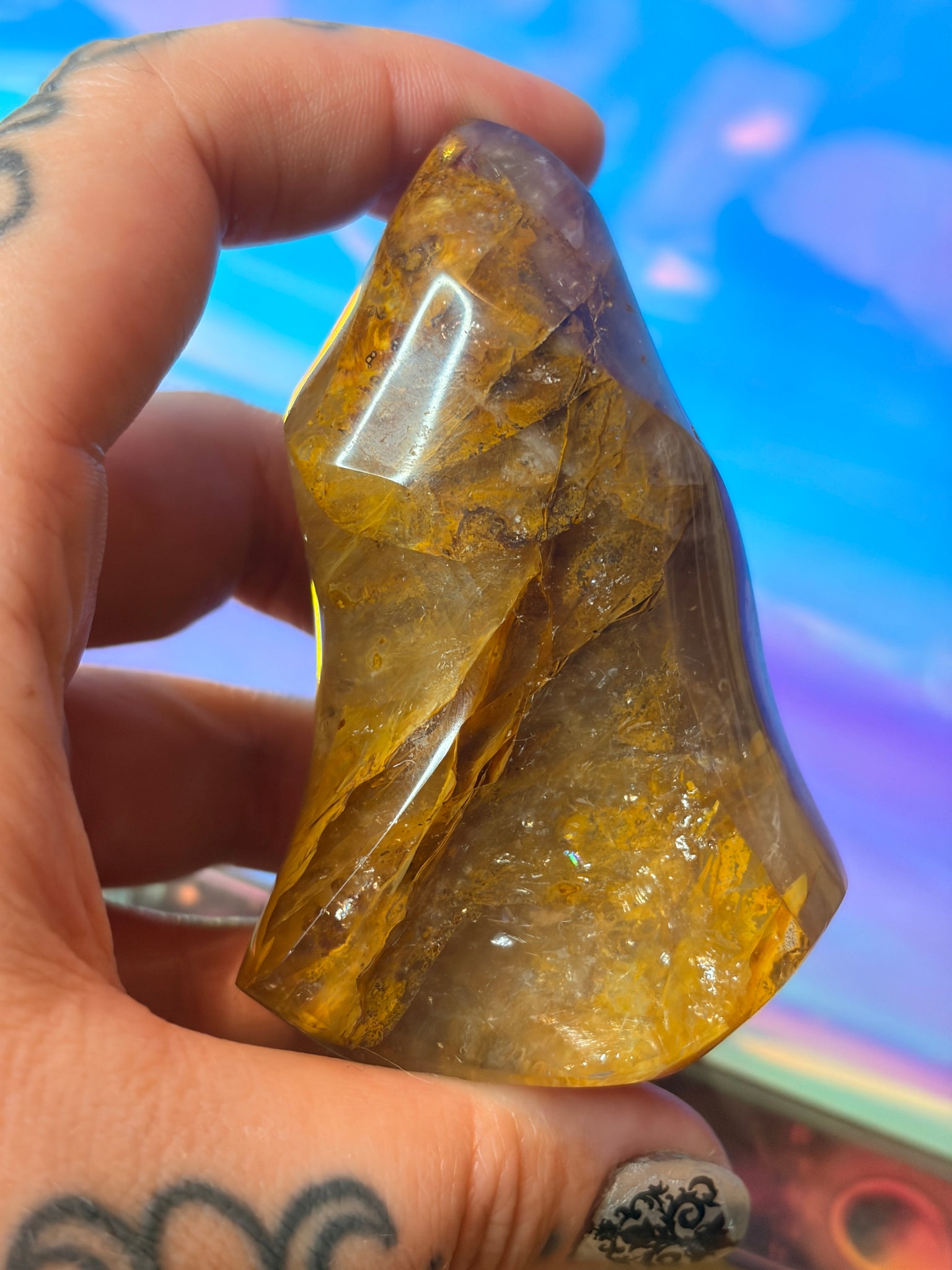 Golden Healer Quartz, also known as Hematoid Quartz, is believed to be a powerful crystal that brings balance, positivity, and deep healing. It's often associated with purification, healing on multiple levels, amplification of intentions, vitality, and connection to divine wisdom. Some consider it a "master healer stone" due to its ability to enhance the healing power of companion stones.