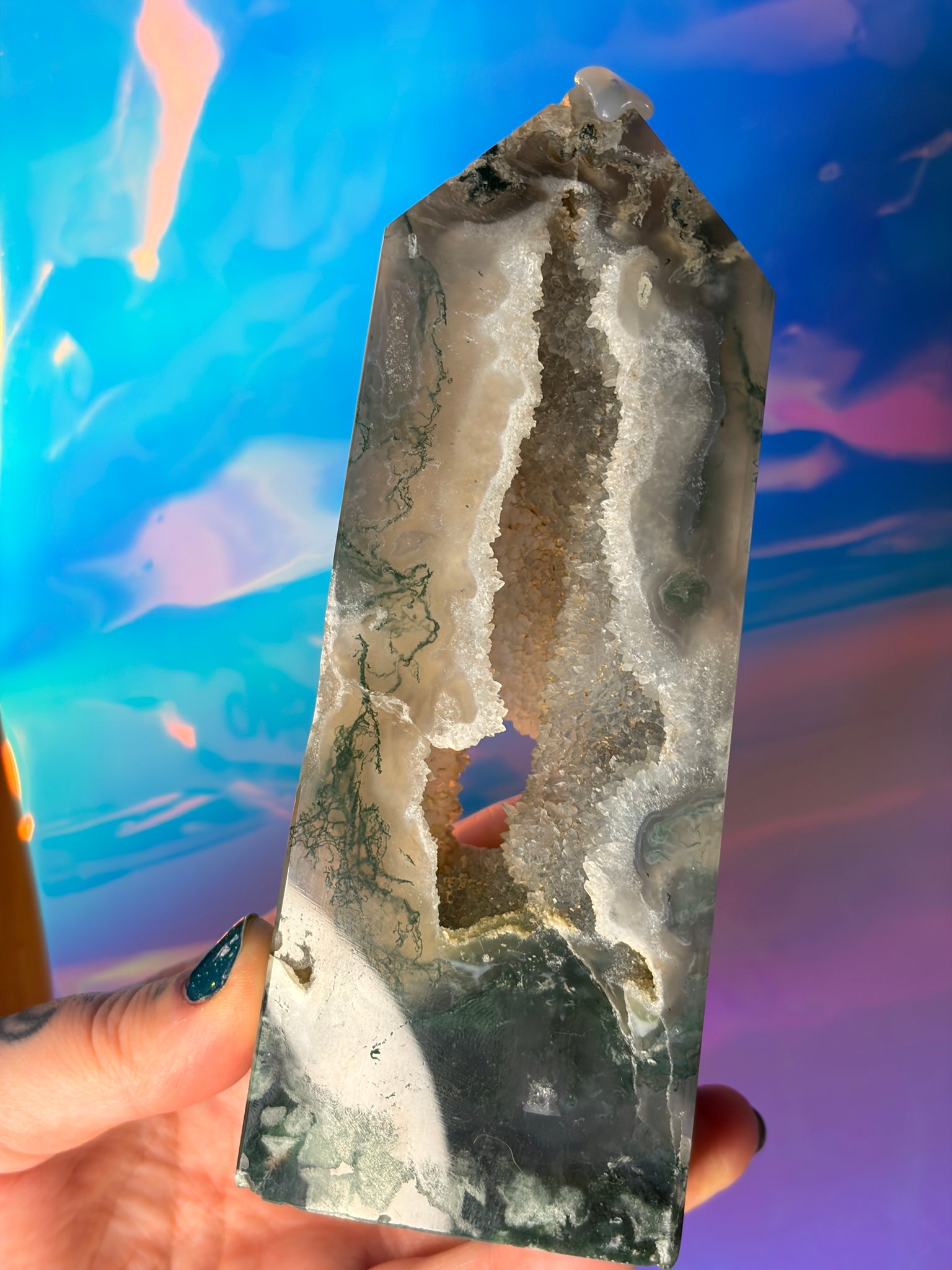 Moss agate is often associated with new beginnings, growth, and a strong connection to nature. It's considered a "stone of new beginnings" symbolizing renewal and the beauty of the natural world. Additionally, it's believed to promote grounding, peace, and stability, encouraging a deeper connection with the Earth.