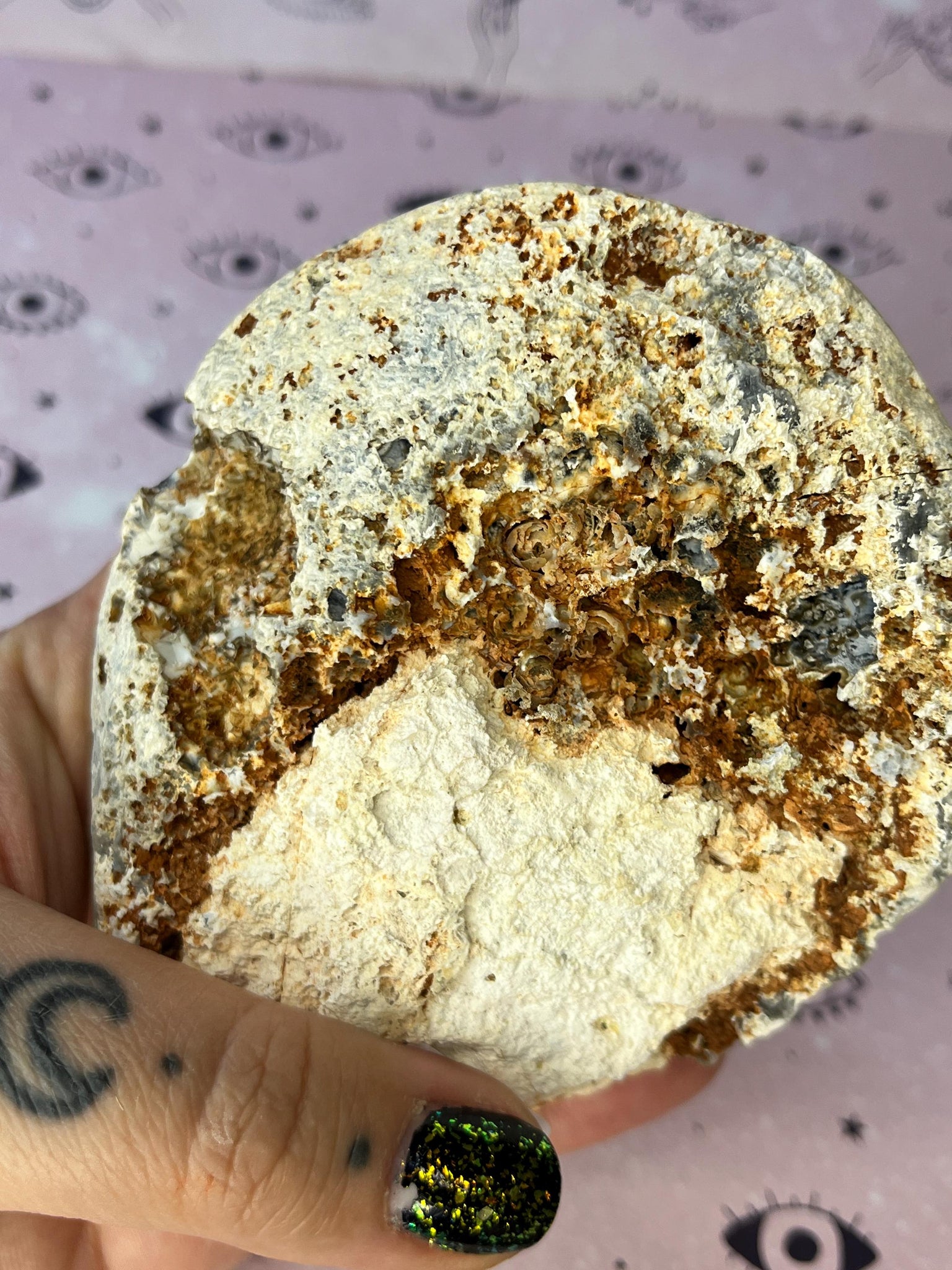 Orca Agate, also known as Ocean Agate, is a crystal believed to promote inner peace, communication, and forgiveness. It's associated with the Throat chakra, encouraging clear and balanced expression of thoughts and emotions. Orca Agate is also said to have grounding energies, connecting you to the Earth and fostering spiritual understanding.